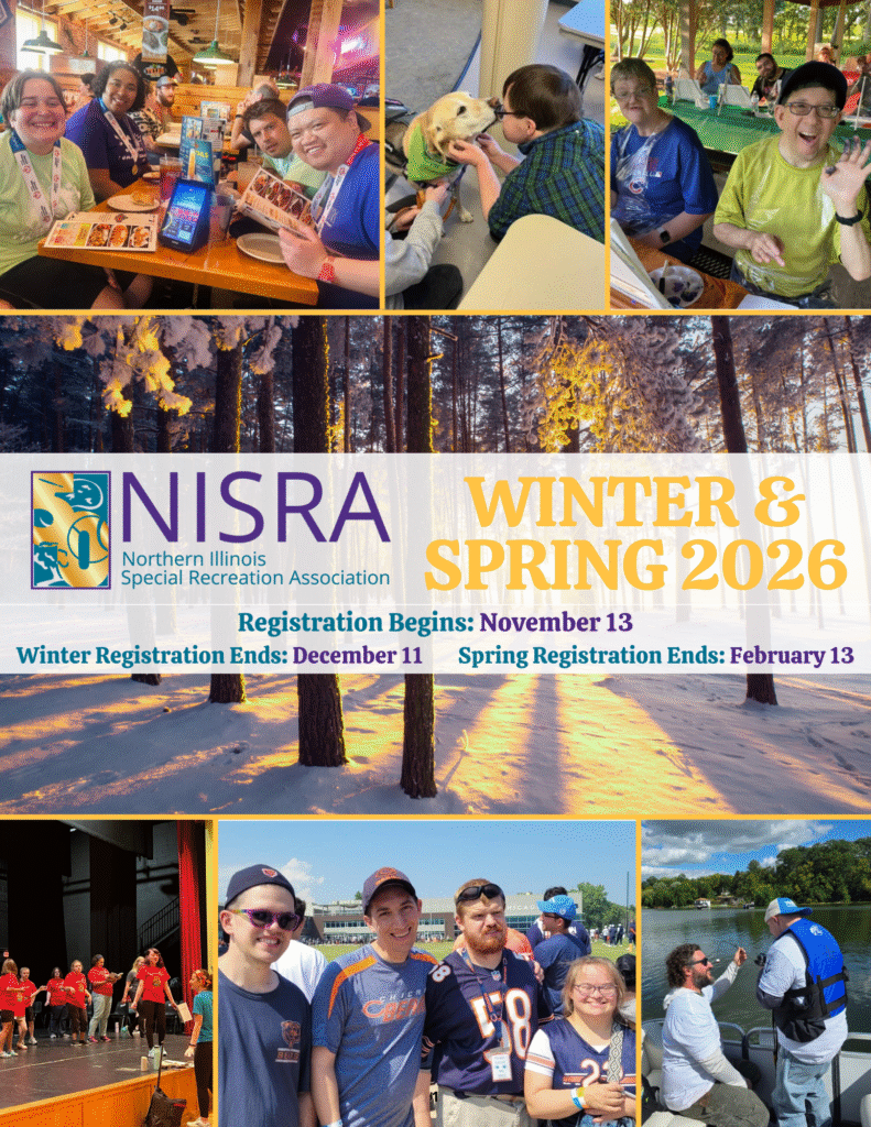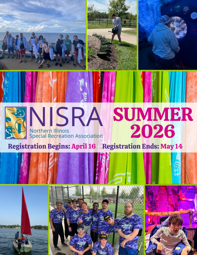 The Northern Illinois Special Recreation Association provides year-round recreation activities for people with disabilities. Since 1976, children and adults of all ability levels have enjoyed socializing, building skills and having fun in hundreds of weekly programs, special events, camps and trips each year.